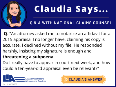 - LIA AD: Subpoena Threat Over a 10-Year-Old Appraisal
